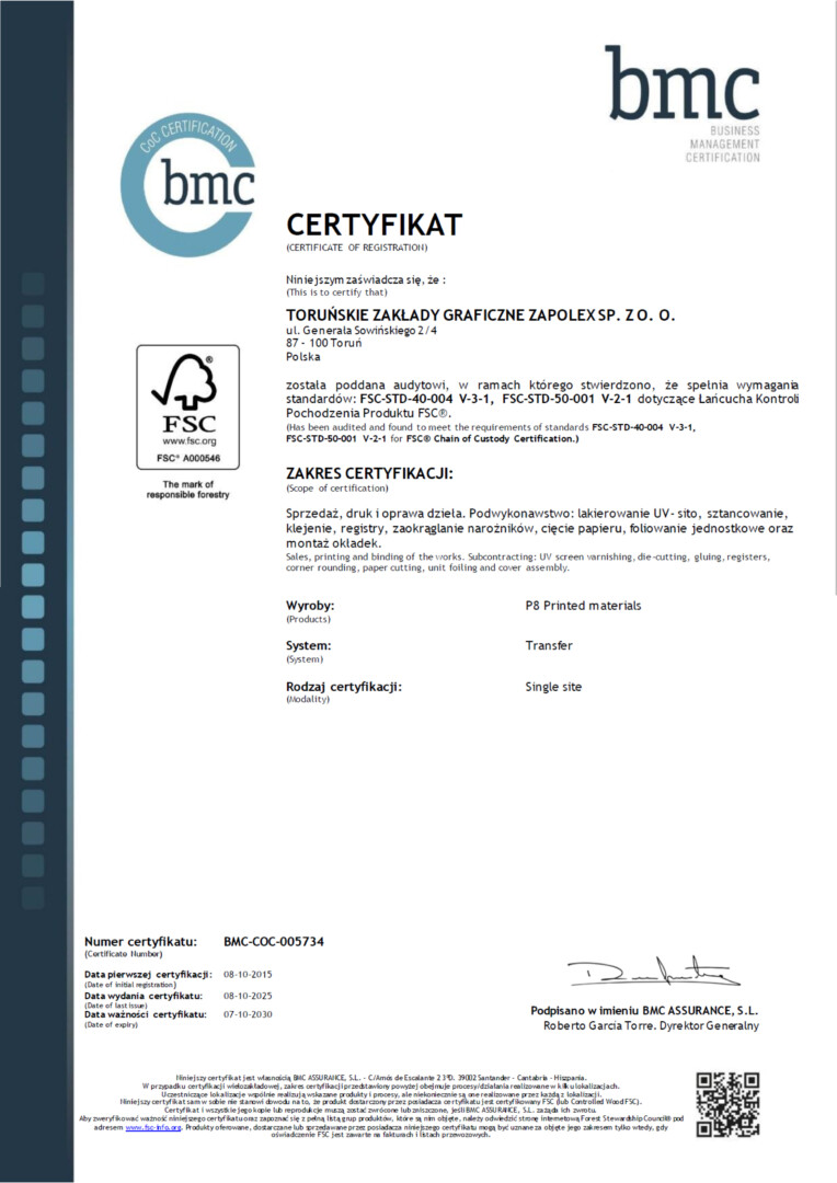 Od ponad 35 lat Toruńskie Zakłady Graficzne Zapolex łączą bogatą tradycję polskiego drukarstwa z nowoczesnymi technologiami. Nasza misja to dostarczanie najwyższej jakości usług poligraficznych. Wyróżniamy się precyzją, terminowością i innowacyjnością. Zaufaj doświadczeniu oraz zaawansowanemu zapleczu technologicznemu.